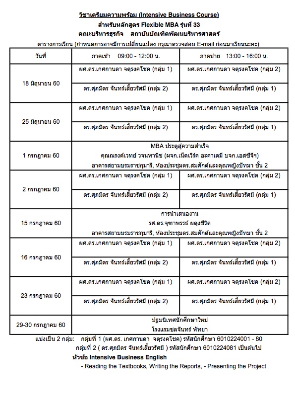 วิชาเตรียมความพร้อม (Intensive Business Course) สำหรับหลักสูตร Flexible MBA รุ่นที่ 33 คณะบริหารธุรกิจ สถาบันบัณฑิตพัฒนบริหารศาสตร์
