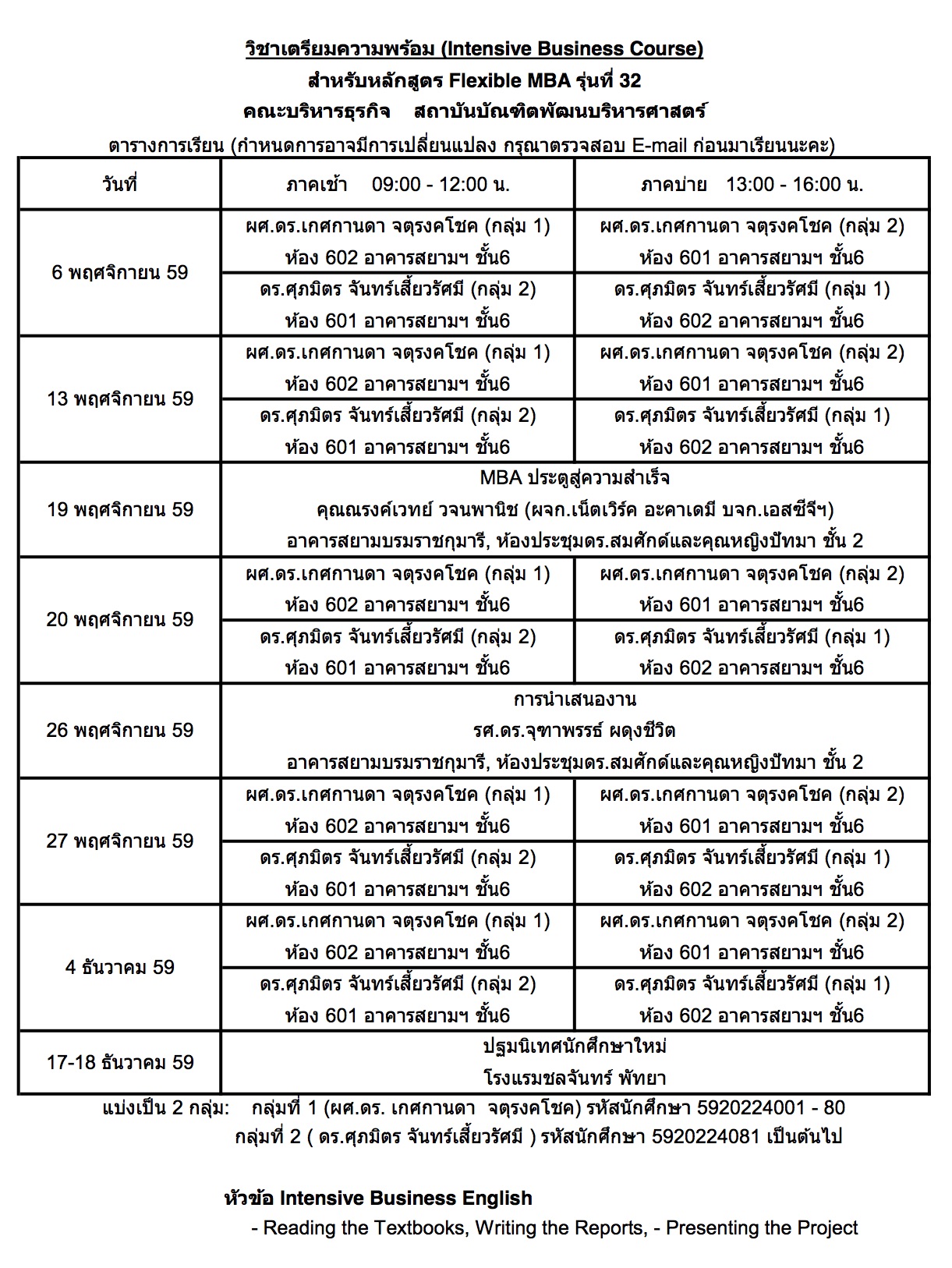 วิชาเตรียมความพร้อม (Intensive Business Course) สำหรับหลักสูตร Flexible MBA รุ่นที่ 32