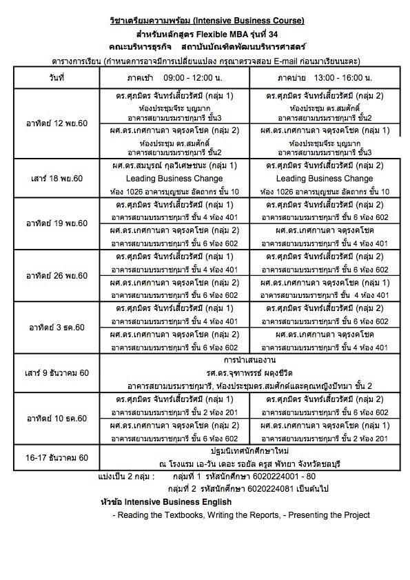 [update] วิชาเตรียมความพร้อม (Intensive Business Course) สำหรับ Flexible MBA รุ่นที่ 34